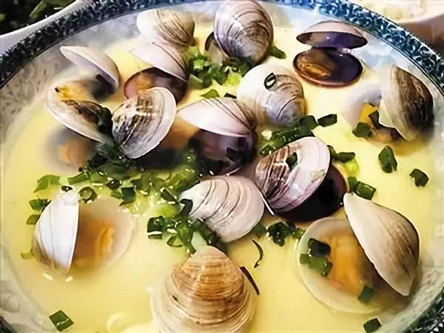 南通文蛤,古之贡品,今之珍贝。“天下第一鲜”即炒文蛤。用旺火速炒,鲜汁内含,口感滑嫩,鲜冠群菜。