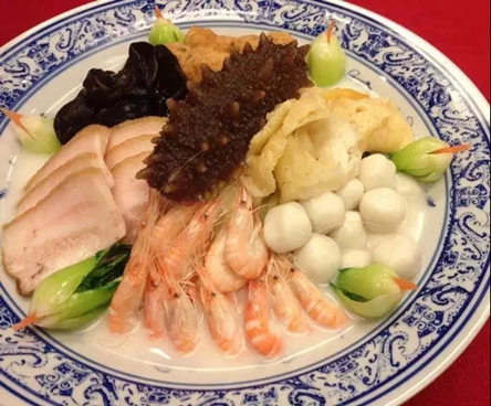 又名全家福、大杂烩、杂菜,用水产品、禽蛋品和畜产品三种半成品的多种原料配制而成。口味香辛腴鲜而宜人,营养丰富开胃,汤菜俱佳。